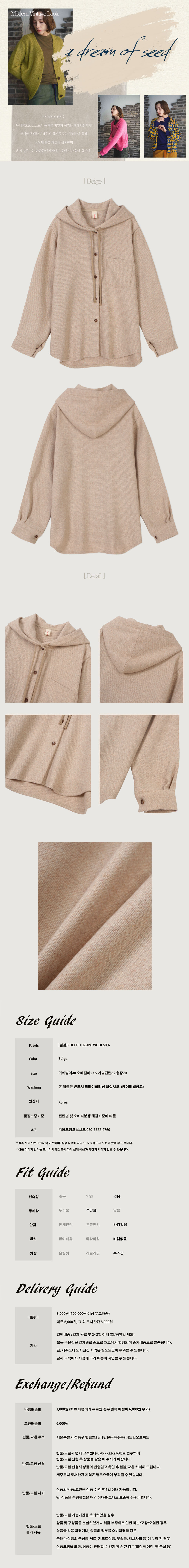 울소재로 따뜻하면서도 편안하게 입을 수 있는 후드자켓입니다. 데이비드 스커트와 셋업하여 모던한 빈티지룩을 연출할 수 있습니다.