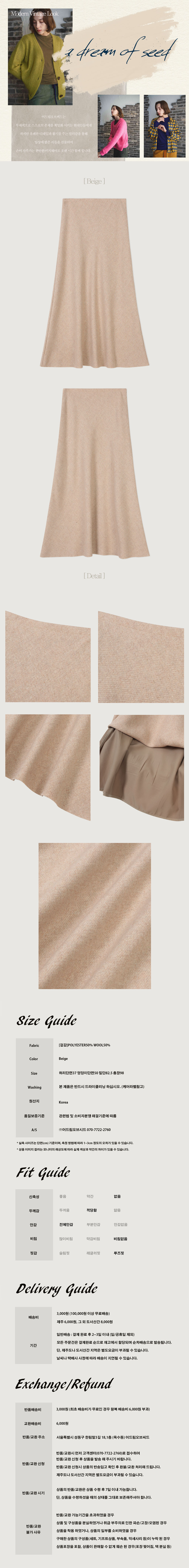 울소재와 안감처리로 한겨울까지 활용가능한 플레어 미디스커트입니다. 데이비드 후드자켓과 셋업하여 모던한 빈티지룩을 완성해보세요.