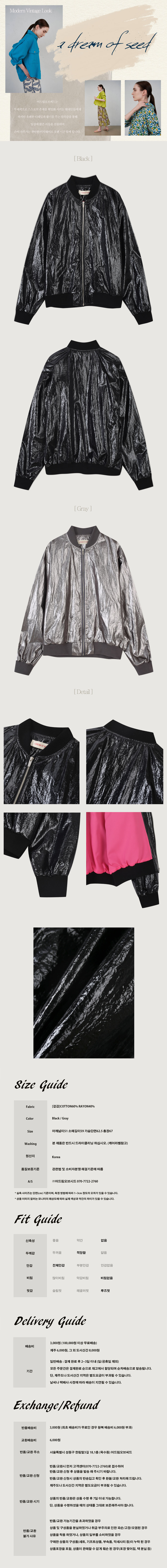S/S시즌 포인트가 되어줄 미니멀한 소재감이 매력적인 봄버 스타일의 자켓입니다. 루즈핏으로 어디에나 편안하게 착용이 가능하고 비비드한 컬러감의 안감은 어드씨만의 유니크함을 강조합니다.